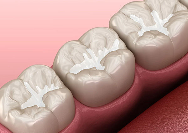 乳歯や生えたばっかりの臼歯は、歯がまだまだ弱いので、歯の表面の溝を樹脂で埋めてむし歯を予防します。