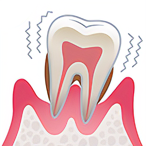 歯茎の炎症がひどくなり、歯周病菌が歯周組織に侵入。歯槽骨や歯根膜も破壊されはじめます。